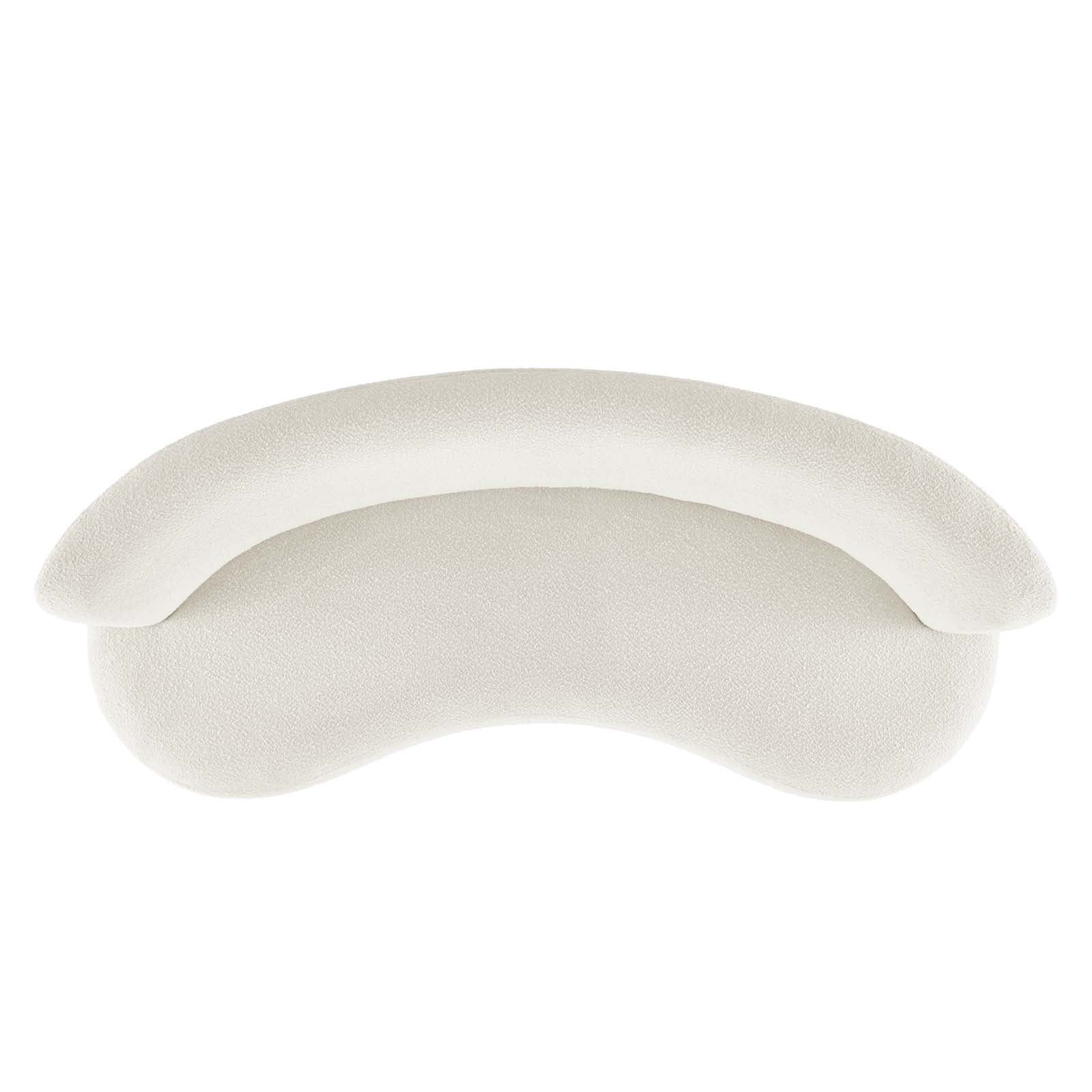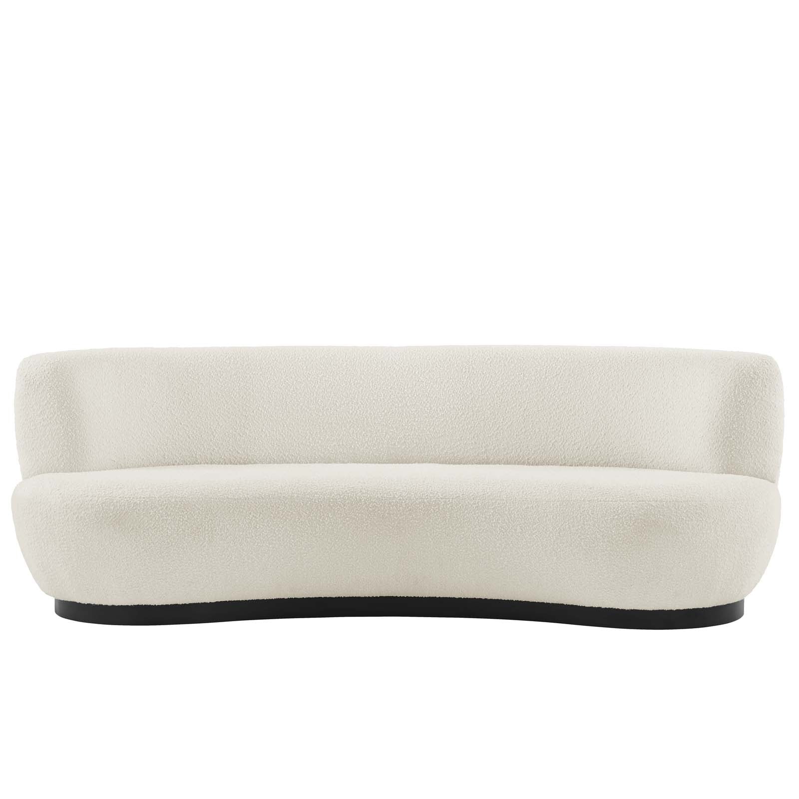 Invite on-trend style to your living space with the organic curves and nubby texture of the Kindred Boucle Upholstered Sofa. Covered - a beautiful boucle fabric made with looped yarns, this couch brings appreciated interest to a living room, office, bedroom, or lounge area. Dense foam padding and a webbed support system create a premium seating experience perfect for relaxing or entertaining. Resting on a brushed gold stainless steel base, this boucle sofa stuns - the modern home or apartment. Weight Capacity: 992 lbs. Set Includes: One - Kindred Sofa